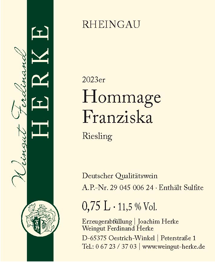 'Hommage Franziska'- Riesling trocken, gerade heraus.